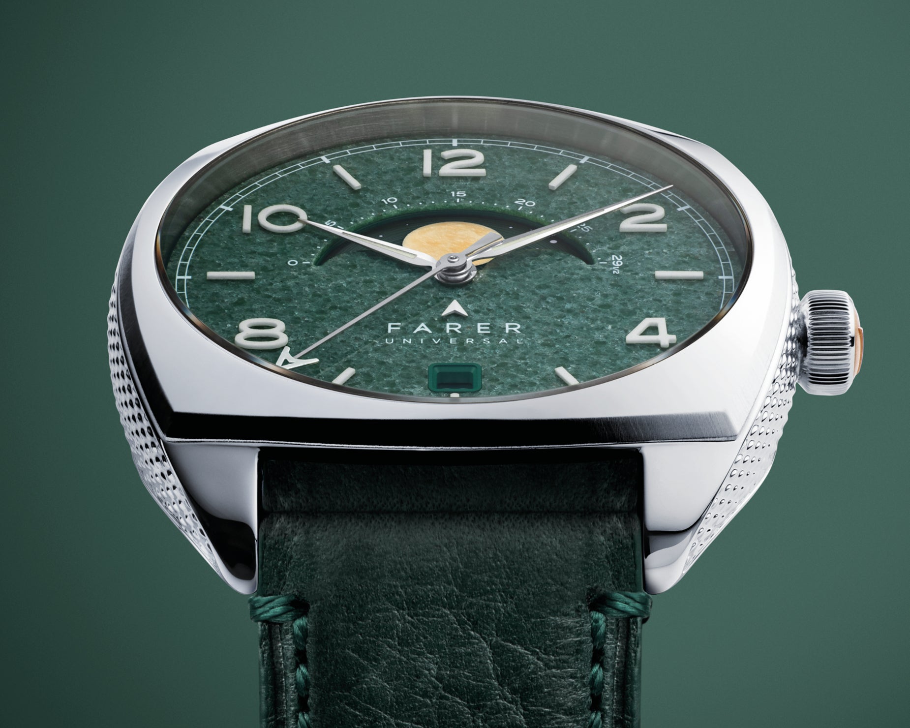 The Moonphase collection offers a fresh interpretation of one of the oldest complications in watchmaking. The moon is hand-painted in Geneva, Switzerland using Grade OL X1 Super-LumiNova, which makes for a striking sight during both day and night. Each model in the collection has a different coloured moon, which is inspired by the different shades the moon can appear under certain conditions.