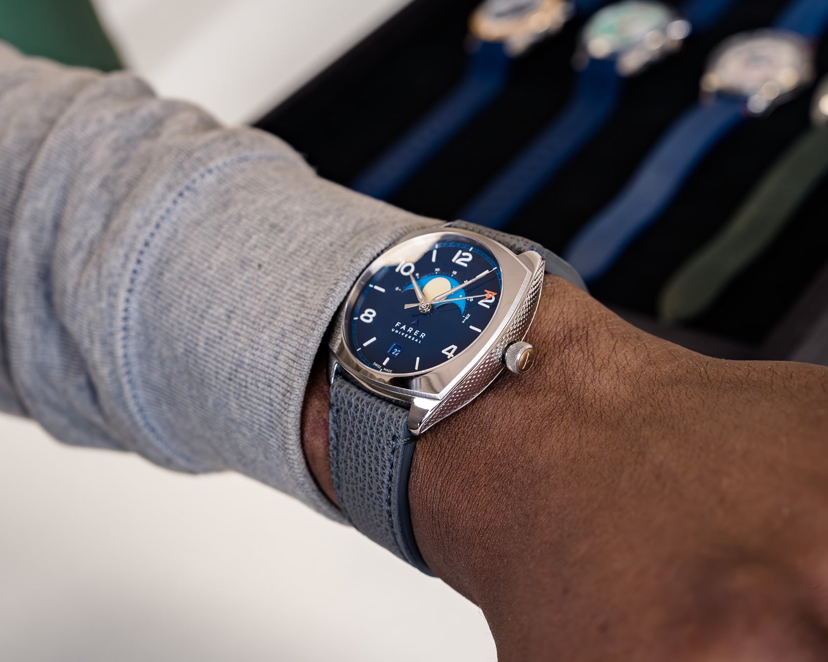 If you’d like to try on any of our watches before purchasing, you’re welcome to come and visit us at our appointment-only showroom equidistant between Ascot and Bracknell. Here in the idyllic countryside, you can relax, view our entire range, and purchase your chosen watch to take home with you.