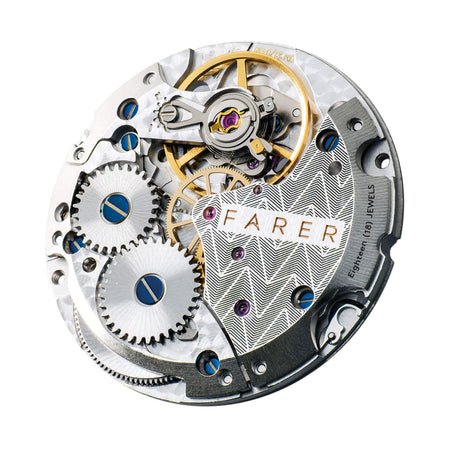 - Movement: Swiss Made Sellita SW288-1 Ma Elaboré Grade movement, blue screws with bespoke Farer embossed patterned bridge