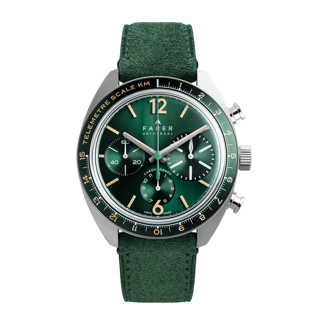 With its striking colour scheme and easy-to-read layout, the Moritz Green is a thoroughly modern descendent of the distinctive racing chronographs of old and embraces the heritage of endurance those classics embodied.