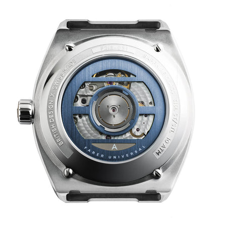 This complex dial is encased in a 38.5mm steel case that echoes its elegance. The satin brushed surfaces are punctuated by polished chamfers that highlight the Integra’s sleek silhouette and slim profile. The same can be said of the steel bracelet, with its chamfered edges and individual polished centre links. For unparalleled comfort, the concealed butterfly clasp features on-the-fly micro-adjustment that can expand the bracelet by up to 6mm. For those times that you want the Integra to feel a touch more sporty, each watch is supplied with a complementary rubber strap. These are bespoke to Farer, with segmented sections to mimic the bracelet links, and a textured underside to allow your skin to breathe.